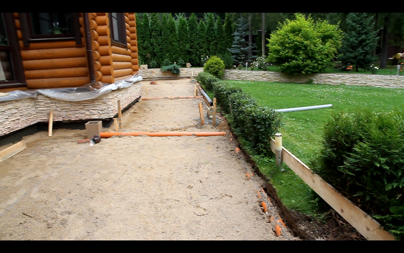Принцип работы всей системы - это связать все выпавшие осадки на кровлю и площадки ландшафта, затем отвести их за пределы участка. Такой метод не позволяет ландшафту разрушаться от нагрузок воды.